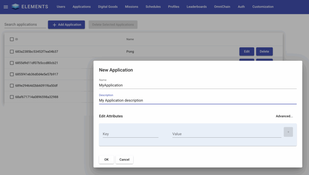 When you are ready to deploy your Element, first you must make sure that you have an Application created. If you have not done so, create a new Application either in the CMS or manually via the Application API.