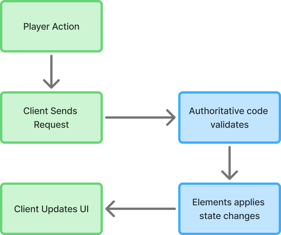 In many systems, authoritative code runs on your own game server. Elements fully supports a server to server model.