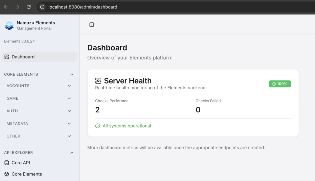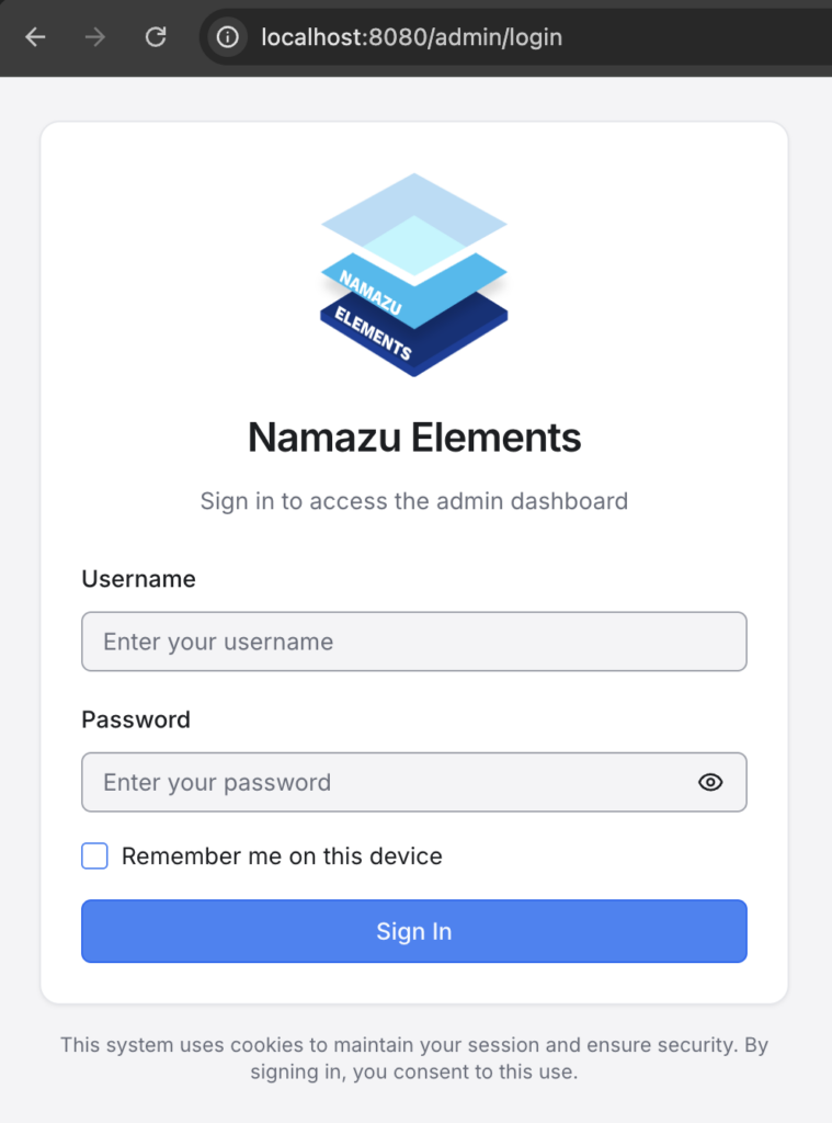 To access the Namazu Elements CMS, you must have Namazu Elements running in Docker.