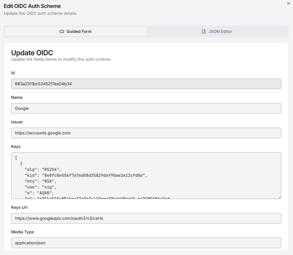 An OIDC Auth Scheme follows the following structure:
