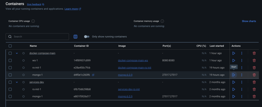 If you’ve already run mongo before using the docker compose up command that you previously used, or via Docker Desktop.